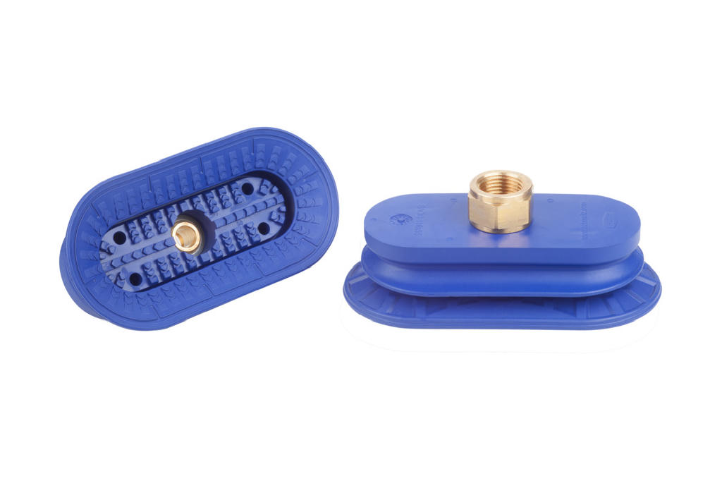 Bellows suction cup (oval) for high dynamic on curved, oily surfaced workpieces